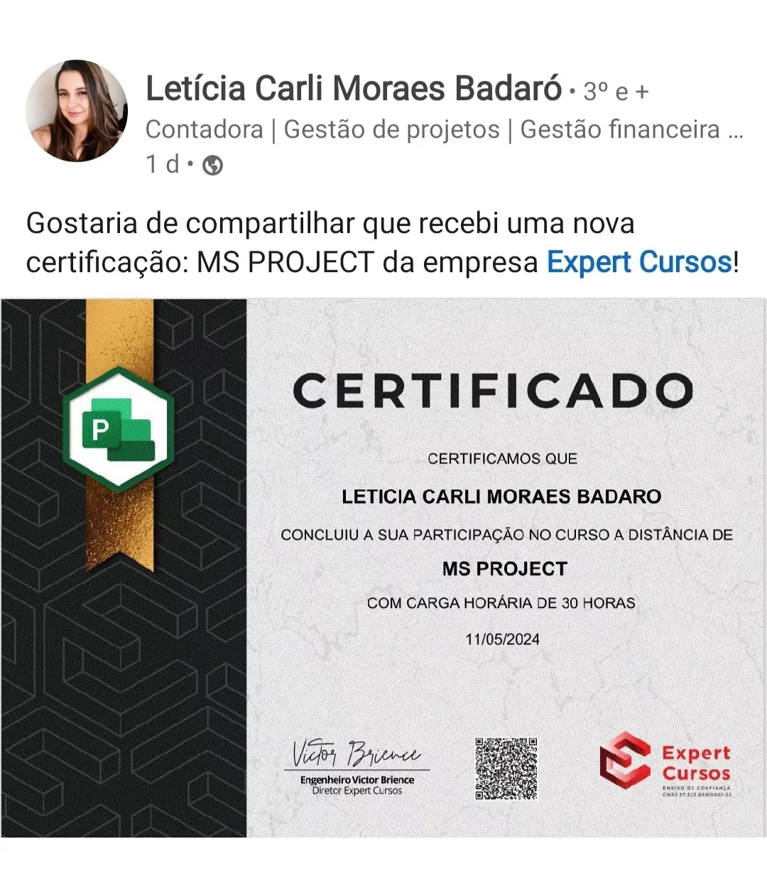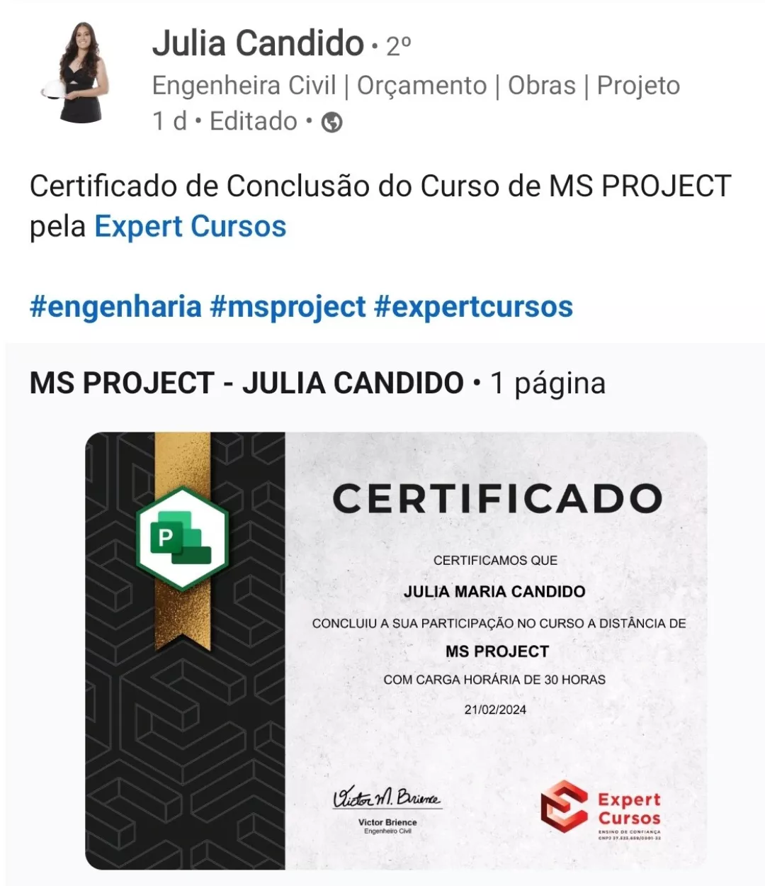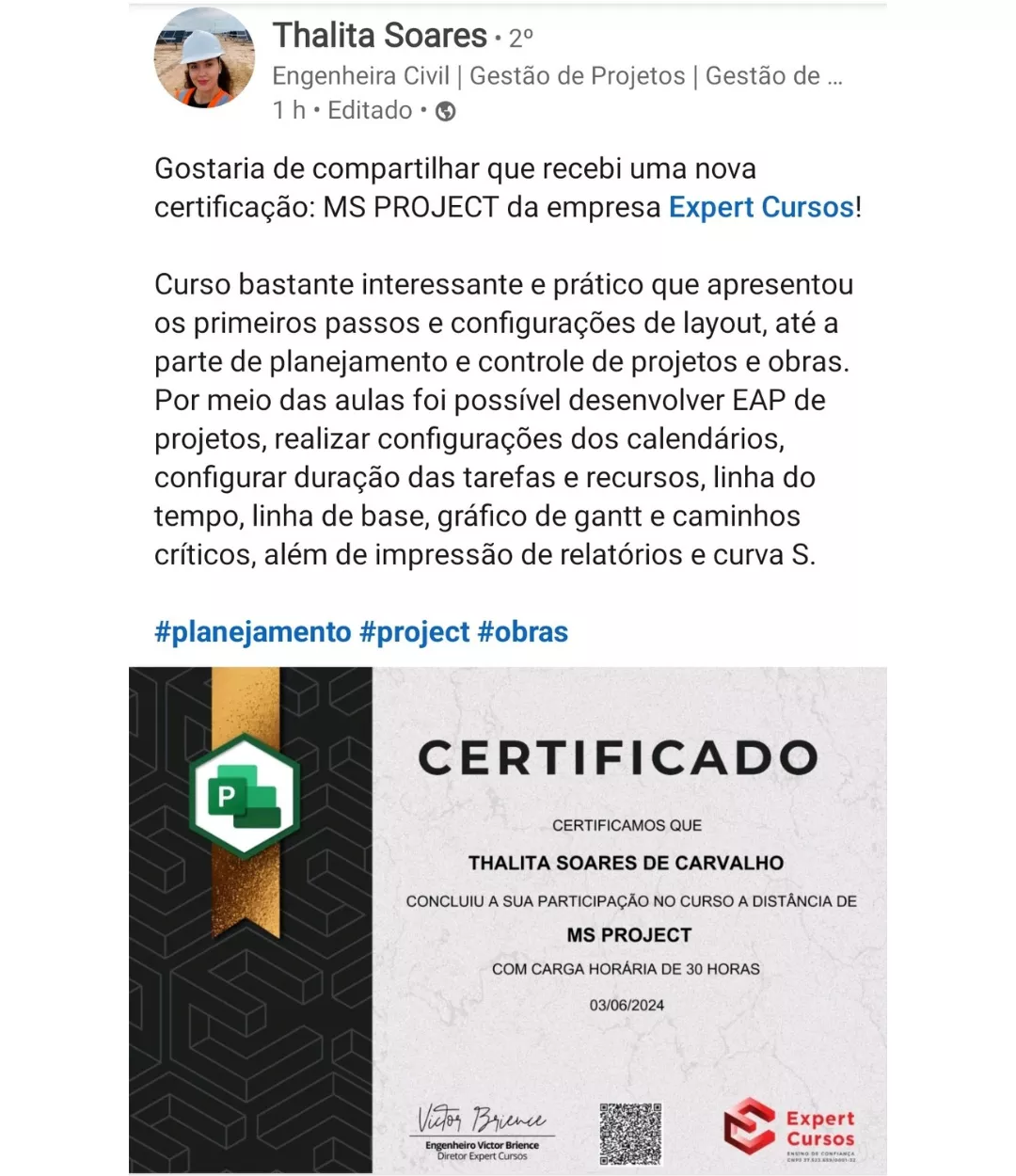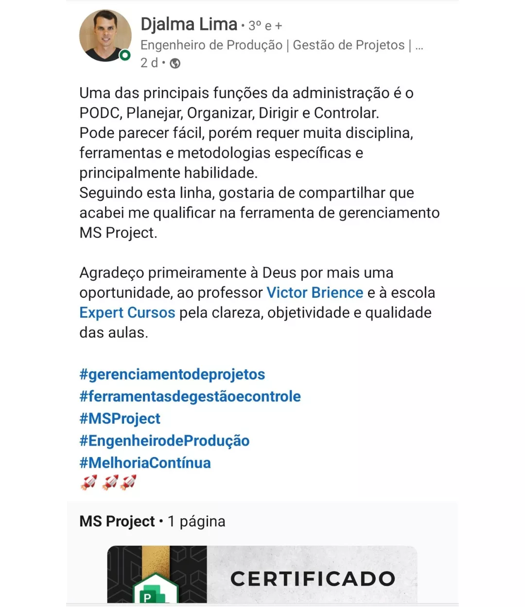 Victor, seu professor nesse curso, é engenheiro e especialista em MS Project e outros programas. Responsável por uma metodologia de aulas diretas, didáticas e com exercícios práticos para melhorar o aprendizado.